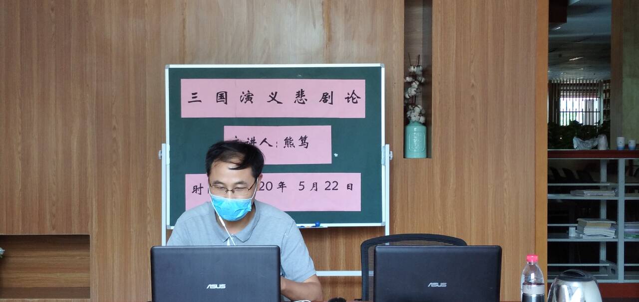 为丰富我校学生文化生活,满足学生精神文化需求,引导学生阅读经典书籍,2020年5月22日下午14:30—16:30,图书馆在腾讯会议室成功举办“《三国演义》悲剧论”讲座。讲座由图书馆副馆长梁彦博主持,重庆市首届学术与技术带头人、享受国务院特殊津贴专家、现代辞赋作家、《朝天门赋》作者熊笃教授主讲。图书馆部分老师及全校200多名学生参加。