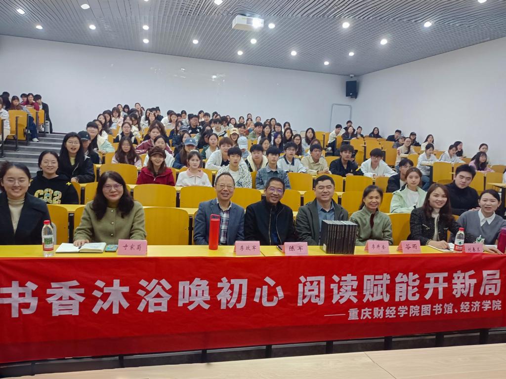 2025年11月12日,由经济学院主办、重庆财经学院图书馆协办的“重新认识凯恩斯及其当下意义——《凯恩斯文集》读书会”在1126阶梯教室圆满落幕。活动以经典文本为纽带,搭建起思想传递与学术交流的平台,王莉姗、刘春兰、谷雨、陈军、李政军、寸家菊等领导与众多经济学子齐聚一堂,特邀国内知名凯恩斯研究专家、浙江工商大学经济学院教授李井奎主讲,在经典理论与现实案例的碰撞中,共同探寻经济智慧的当代价值与凯恩斯思想的理论精髓。
