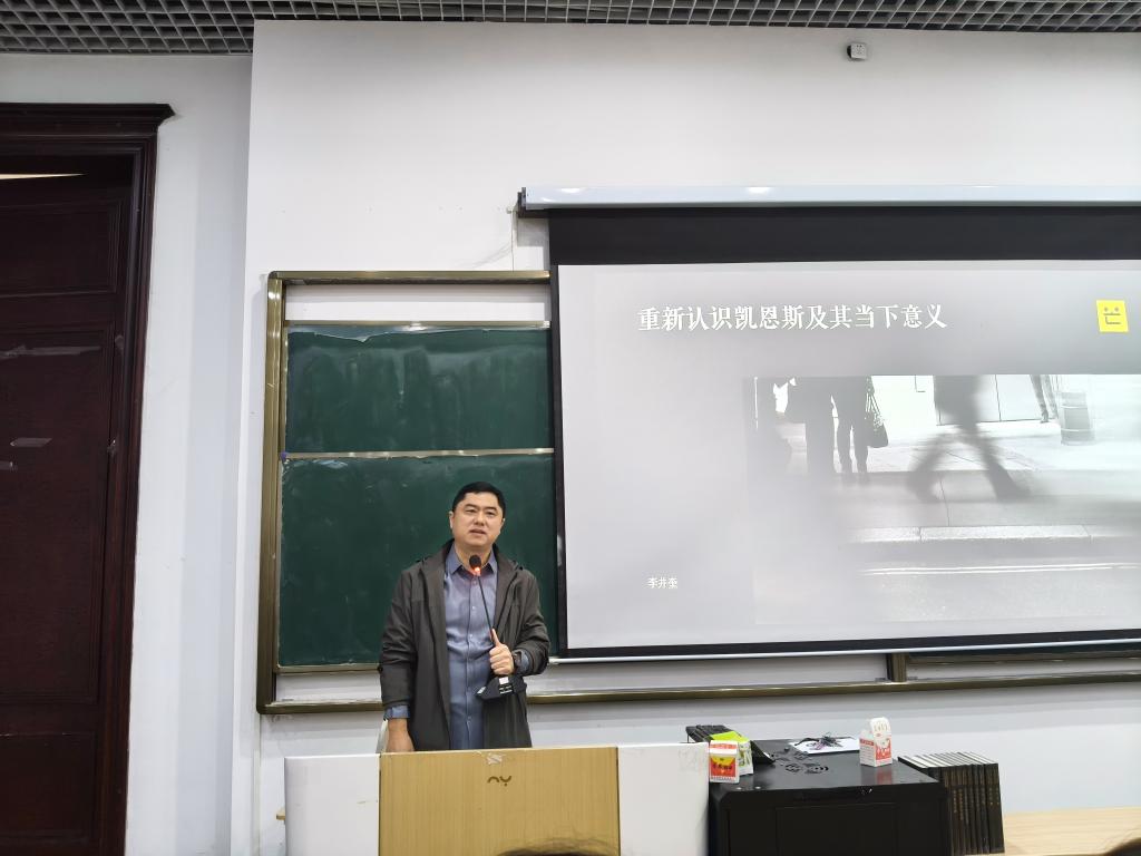 随后,主讲人李井奎教授以深厚的学术积淀和通俗生动的讲解风格,围绕凯恩斯经济思想展开深度分享。他结合自身独立翻译《约翰·梅纳德·凯恩斯文集》(十一卷)的经历,从文本出发解读凯恩斯理论中“市场失灵”“政府干预”等核心观点,同时紧扣当下数字经济发展、全球产业链调整等现实议题,剖析凯恩斯思想的当代适配性与实践价值。讲座过程中,李教授还针对学子们普遍关注的“青年如何运用经济思维分析社会现象”“凯恩斯理论与现代经济政策的关联”等问题抛出思考,引发全场共鸣。