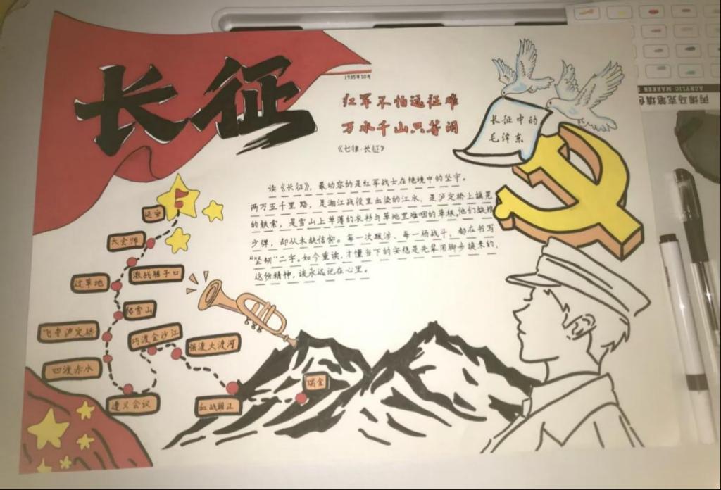 该作品通过《七律・长征》的诗句、长征关键历程,结合红军形象与党徽元素,传递出两层核心思想:一是长征中红军在绝境里坚守的坚韧意志、“不怕远征难”的革命乐观主义,以及信仰支撑下的无畏精神;二是借文字与符号,感召后人铭记这份精神,让长征的坚韧与信念在当下延续。