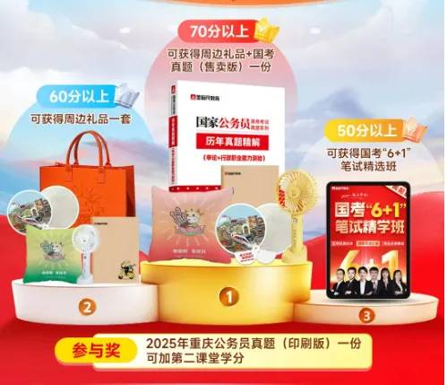 (1)70分以上:周边礼品+国考真题(售卖版)一份;