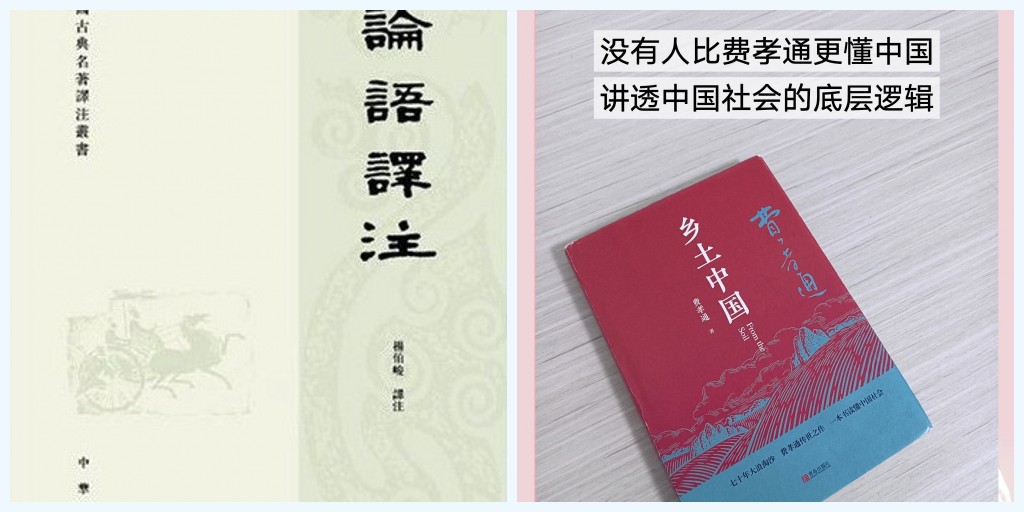 六、推荐书籍:《论语》,索书号:B222 475/487 G634 747藏于老馆;《乡土中国》,索书号:912 1633/2045藏于老馆