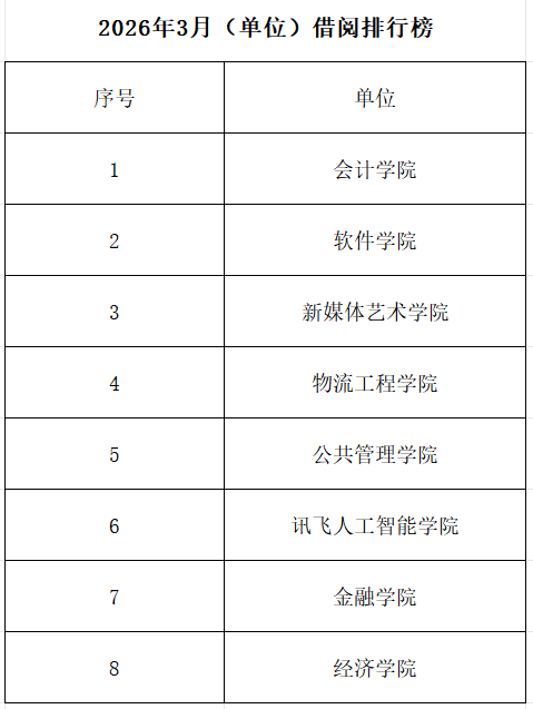 2026年3月(单位)借阅排行榜