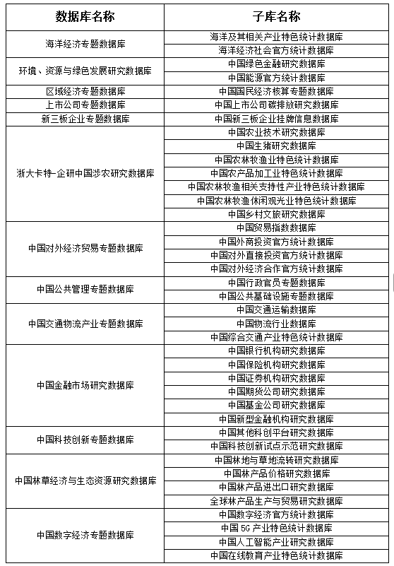 为丰富广大师生对数字资源的需求,图书馆、经济学院与企研数据科技(杭州)有限公司协商一致同意在校园IP段范围内开通试用,欢迎广大师生提出宝贵意见。